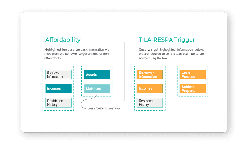 The regulatory question surfaced the most consequential constraint of the entire project. I was pointed toward Regulation Z and the TRID rules — federal requirements that obligate a lender to issue a Loan Estimate within three business days of receiving a completed application. "Completed" is a defined term under TRID: once six specific pieces of information are collected, the clock starts. This meant that the structure of the application form wasn't just a UX decision — it was a compliance trigger. Capturing data too much too early would create operational burden for the business.