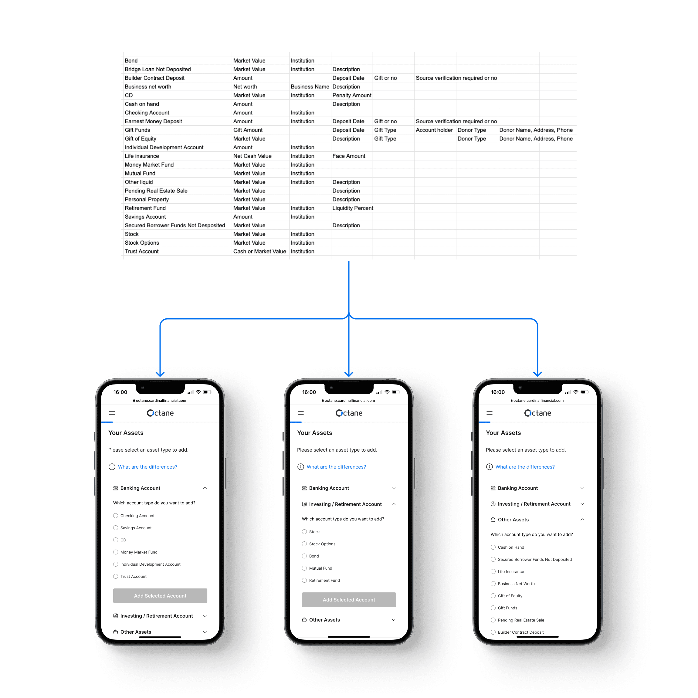 All three options shared a critical finding from the early stage: rather than collecting exact values for certain fields, the application would collect estimated values for items that would trigger TRID if confirmed. This kept the company on the right side of regulation while still capturing enough information to move cases forward.